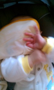 You are now four months old.  I’m way past the expiration date for sending a birth announcement as I had originally planned.  At this point, I might as well wait a bit longer and send out a card with your driver’s license photo with the caption,  “Time just goes by so fast.”